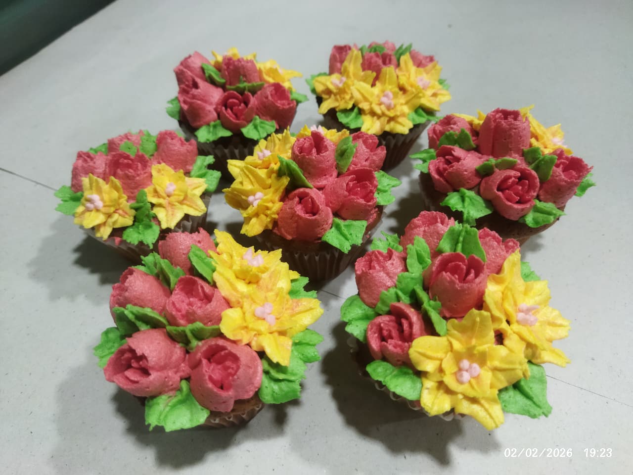 7 floral cupcakes with elegant paper wrapping