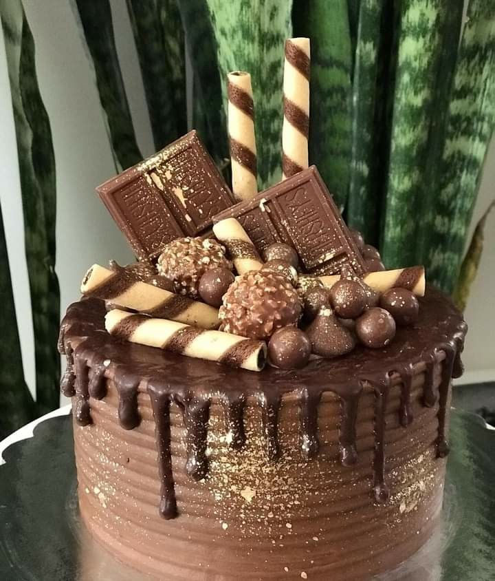 Size - 6"x6"x5" Shape - Round/ square Chocolate layered cake with chocolate, chocolate sticks, and chocolate balls *Size and design can be customized